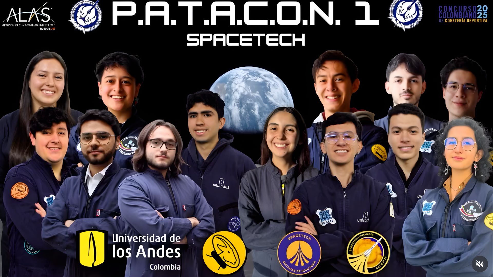 El equipo de cohetería de la iniciativa estudiantil SpaceTech, de la Universidad de los Andes, participó en la tercera edición del Concurso Colombiano de Cohetería Deportiva 2025, realizado del 23 al 26 de octubre en Medellín, donde presentaron el cohete P.A.T.A.C.O.N. 1 (Plataforma Avanzada de Tecnología Aeroespacial con Objetivo No-orbital) y su sistema satelital S.U.E.R.O (Sistema Universitario de Experimentación de Recursos Orgánicos), ambos diseñados y creados desde cero por los estudiantes. Su propuesta les mereció un reconocimiento por el uso de materiales avanzados y por el desarrollo completo de la misión.